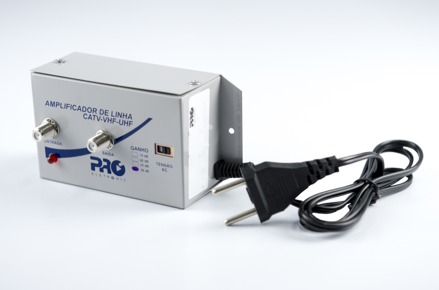Produzido no Brasil, este amplificador compensa as perdas impostas pela utilização de cabos coaxiais e divisores na instalação. Sua caixa metálica é revestida com pintura eletroestática, garantindo maior proteção e resistência do produto.