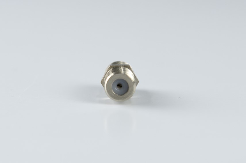 A emenda é utilizada para unir dois conectores tipo “F” macho, evitando a perda de sinal entre os cabos coaxiais.