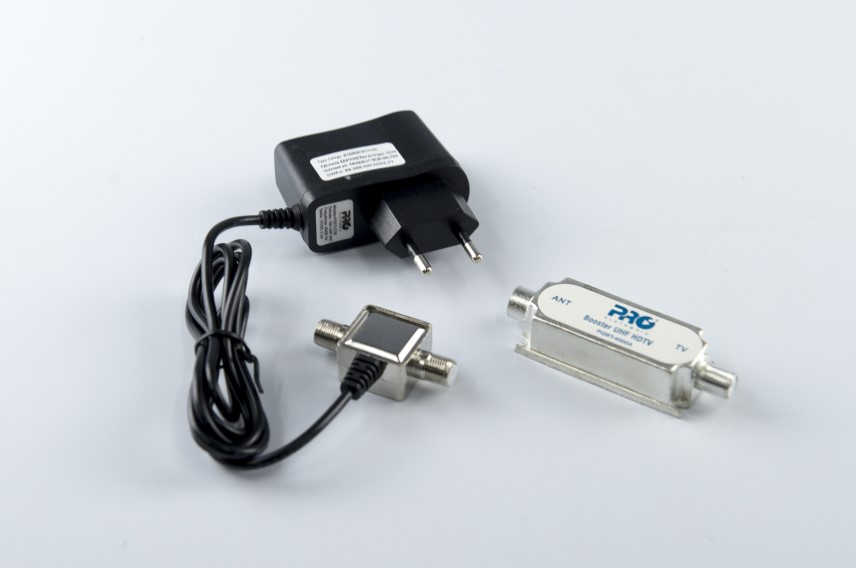 O booster Proeletronic é indicado para áreas onde o sinal digital não chega com a potência necessária, causando imagens chuviscadas ou congeladas.