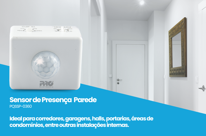 Nossa linha de Sensores de Presença é perfeita para instalar em garagens, prédios, corredores, entre outros ambientes internos.